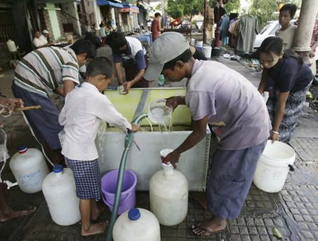 People lining up for clean water - there are many places that are a thousand times worse than this. Photo - AP